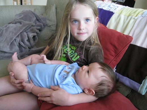 Henry has grown so much over the last few weeks. He’s nearly able to hold his head up all by himself, and he’s so much more aware of his surroundings. He’s into a pretty good daily groove, too. He gets up in a good mood in the mornings. He has breakfast, then playtime on his play mat with a few toys. Mommy or Daddy read a book with him. Eventually he gets sleepy and takes his first nap of the day. The rest of the day is a series of wake-feed-play-nap cycles, averaging about three hours apiece. Sometime between 8 and 9 PM he gets his nighttime feeding, followed by a relaxing bath and then beddy-bye by 10 o’clock. Overnight, he typically gets up once for a feeding.