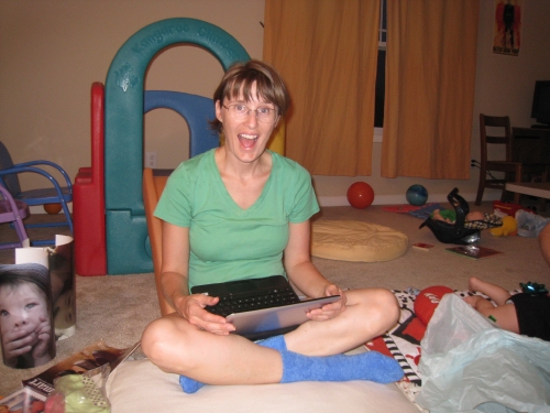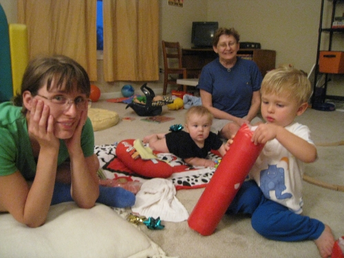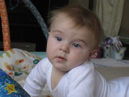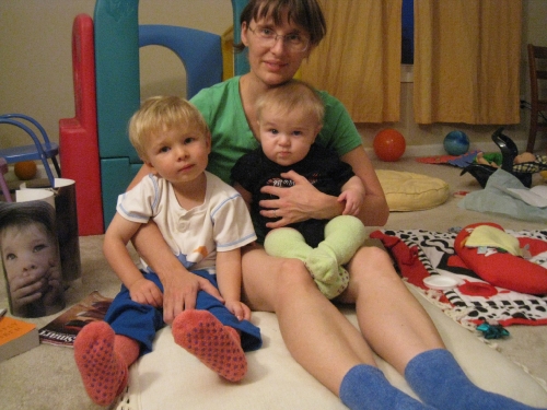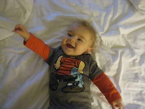 Our current schedule has Linus nursing from 8-10, dozing and nursing on and off, and finally going to bed between 10 and 12. He gets up at least once or twice during the night to nurse, but has to be woken in the morning to get to school on time. Not a very good schedule for any of us.