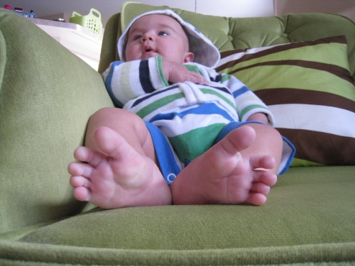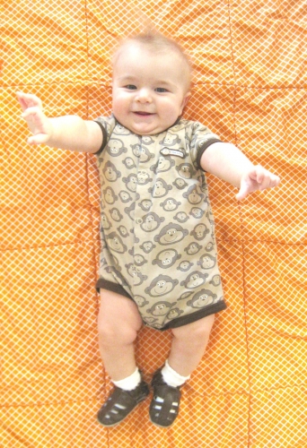 Last night I re-read the Ferber book and realized there are three problems we need to work on. First, he’s getting up too often at night to nurse. (He recently had a cold and was up 3 times a night!). Second, he needs to be put on a more regular, predictable schedule so that he can know what to expect when. Lastly, he needs to lose his improper sleep associations, which generally is me nursing him to sleep.