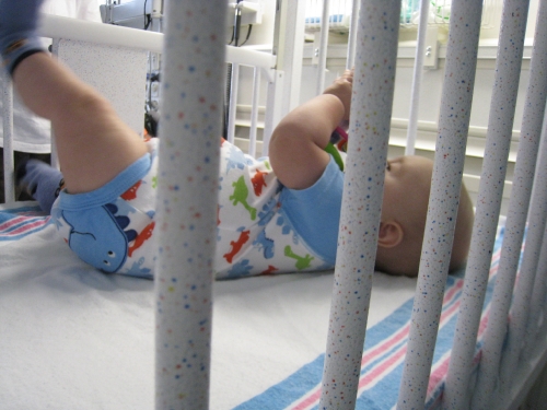 This is due to at least a few reasons that I can think of, including the fact that Henry’s schedule is more fixed, so we’ve worked Linus in around Henry, and also that Linus’s colostomy bag prevents us from giving him a bath every night so we don’t have a good nighttime routine going.